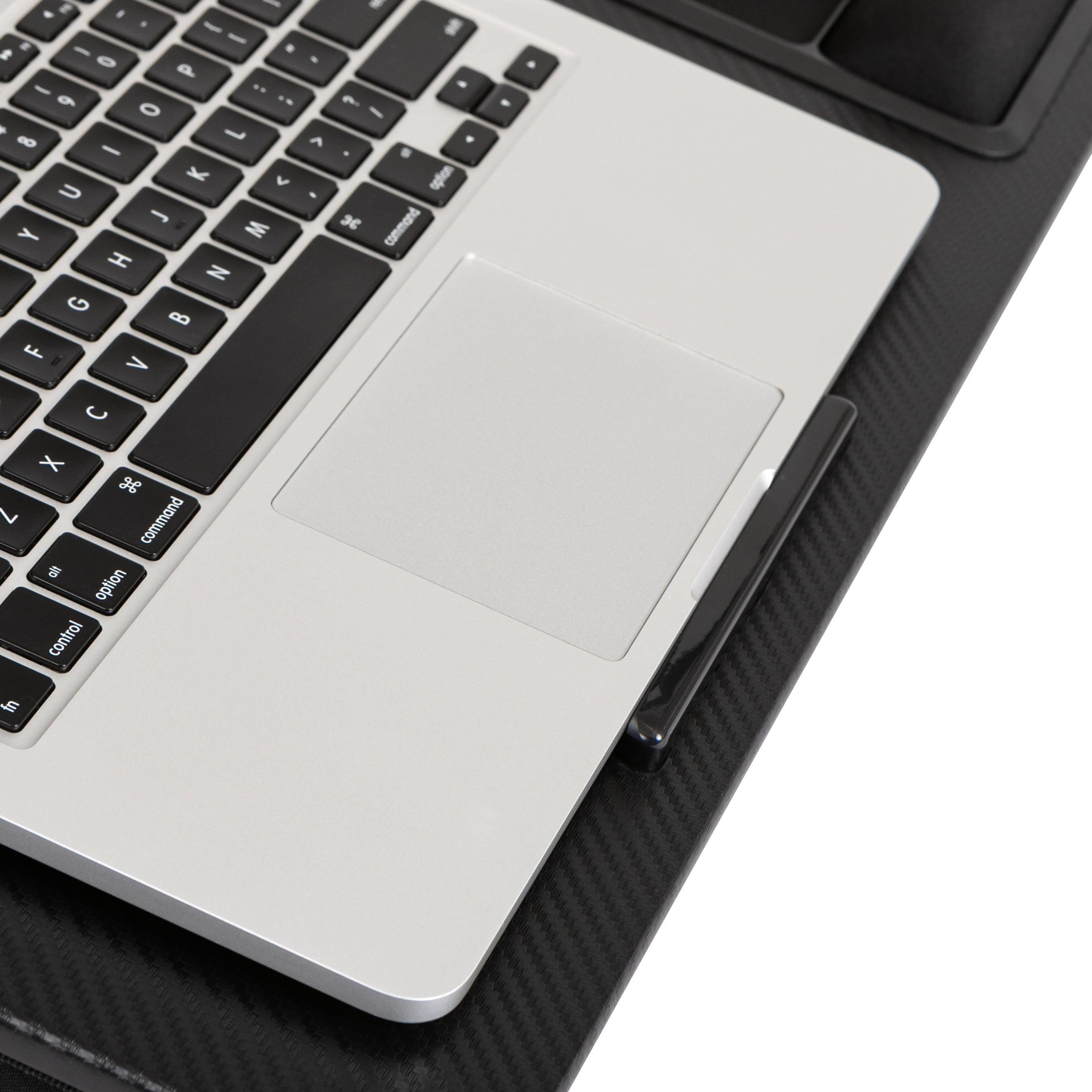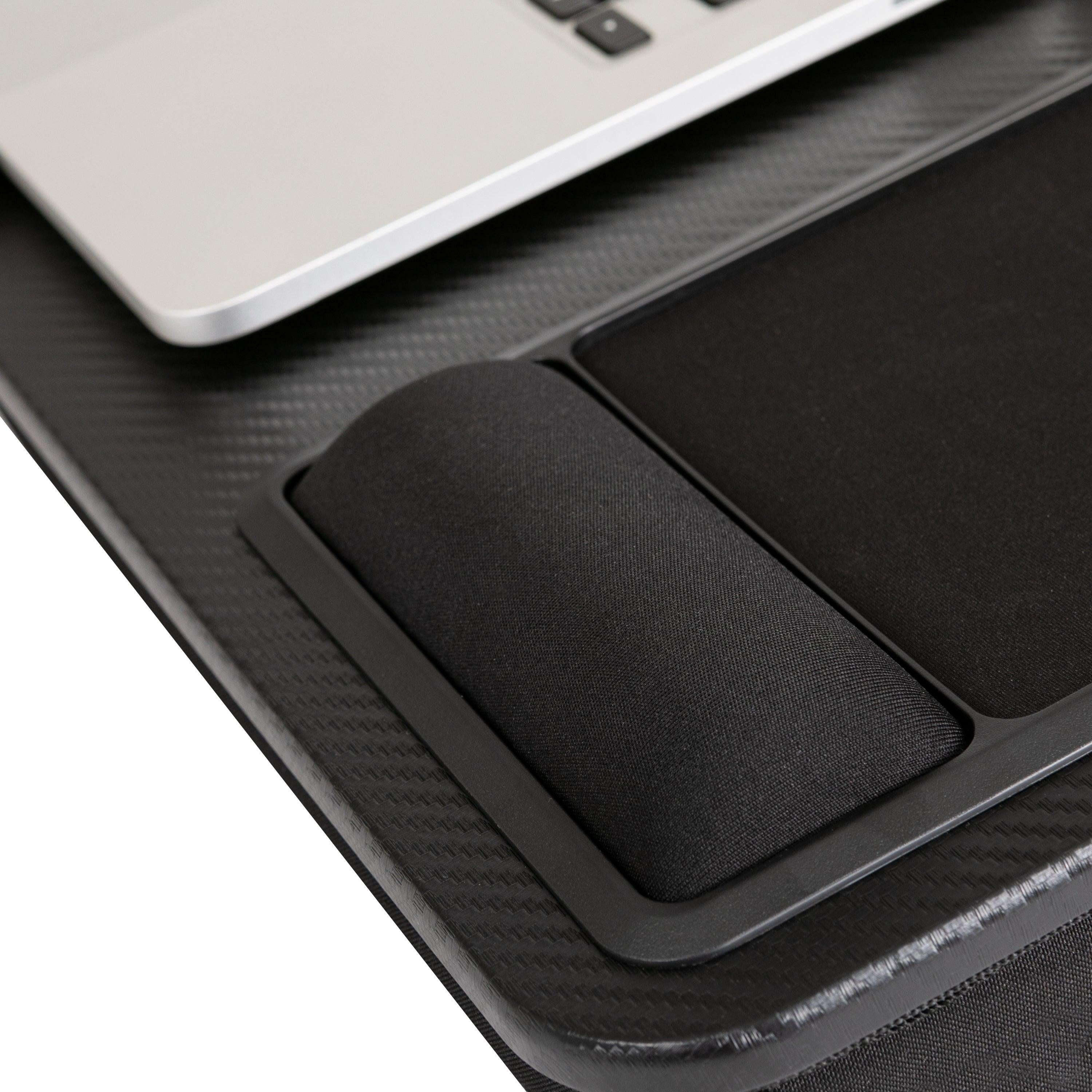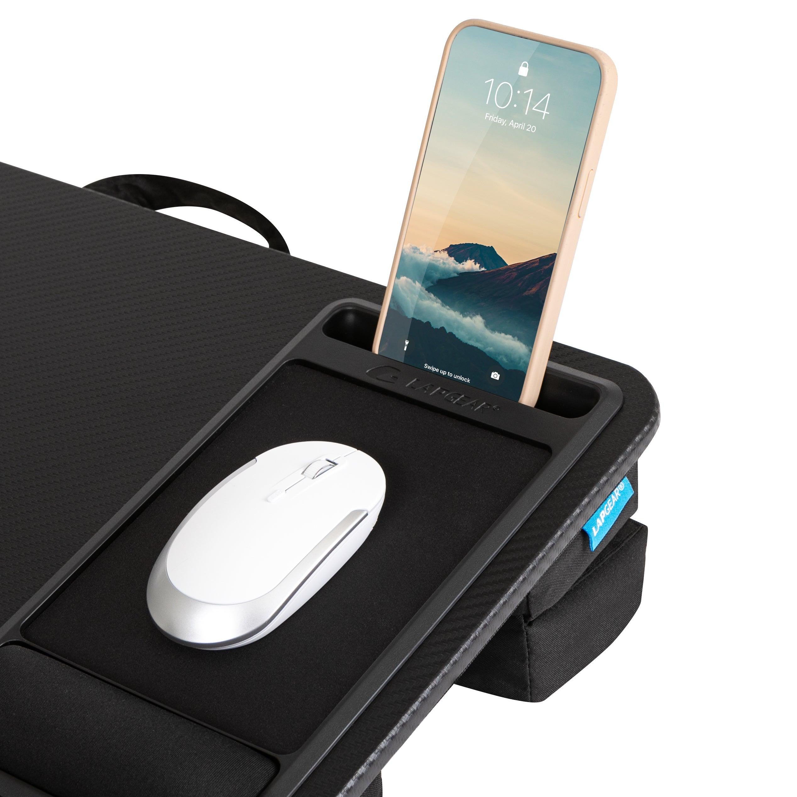 Take your work to the next level with the Elevation Pro Lap Desk. One of our most versatile designs, the foam-filled cushion folds out to create an ergonomic work surface that will reduce neck strains. The Elevation Pro Lap Desk is designed with a built-in gel wrist rest that adds comfort and support while you are working with your mouse. Use the phone slot to store your smartphone so you don’t miss a text or Facetime call. The spacious surface of the Elevation Pro Lap Desk is large enough to hold laptops up to 17.3 inches with no issue. The Elevation Pro Lap Desk will easily become your next favorite lap desk to help you stay on task and meet work deadlines.